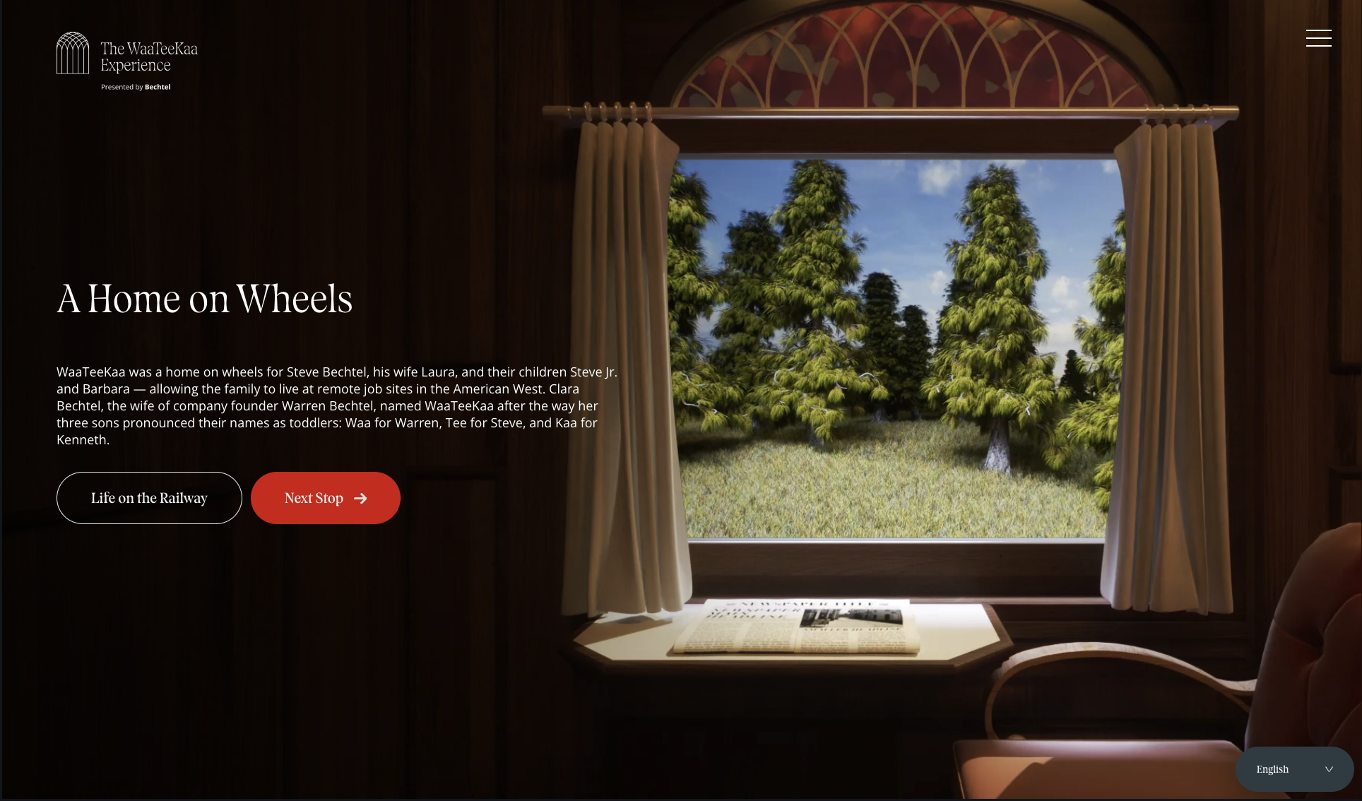 To celebrate the humble beginnings of their 125-year history, Bechtel, the American engineering and construction firm, commissioned a custom interactive website to tell the story of how their founder and family lived on a railcar nicknamed WaaTeeKaa.